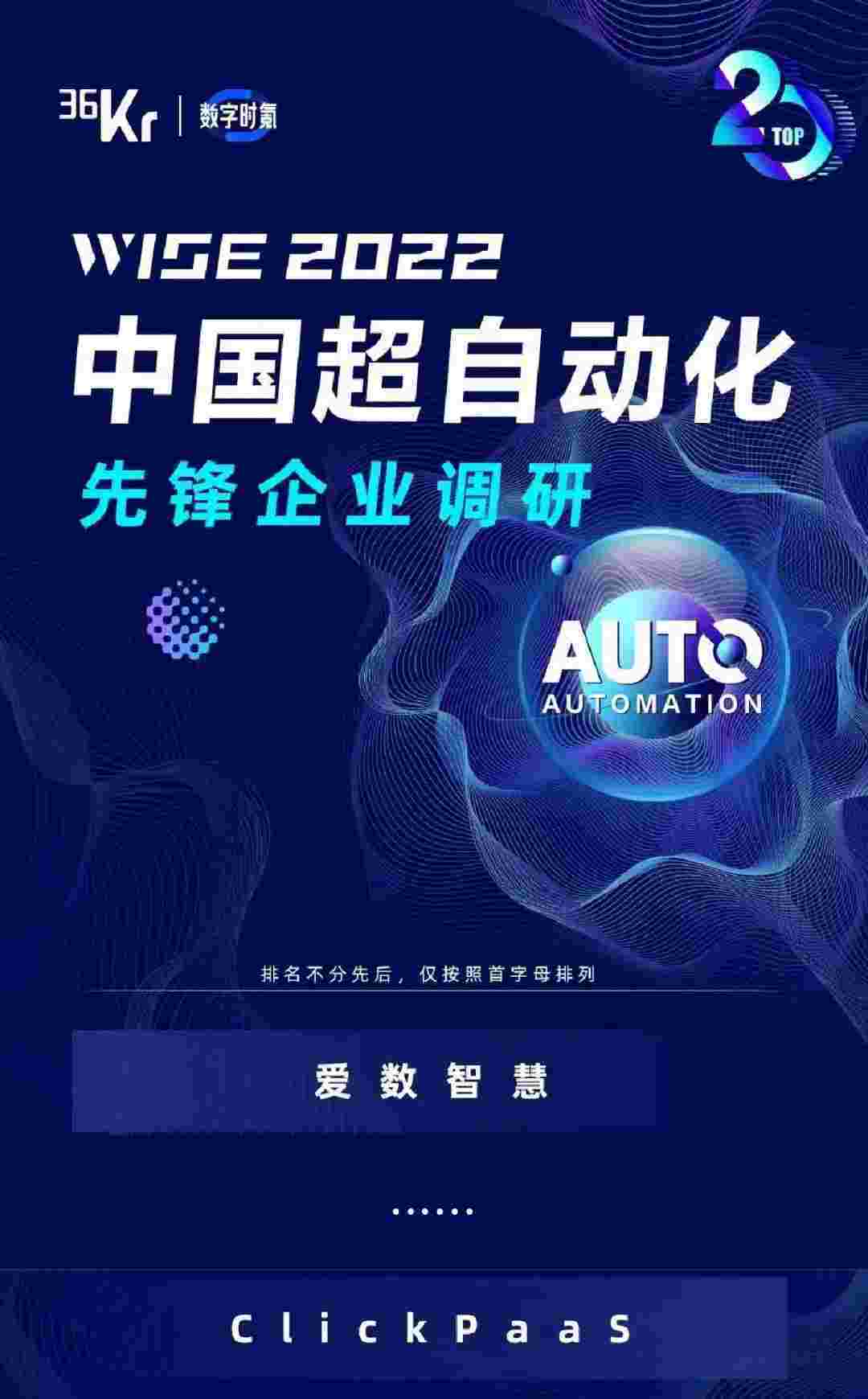 8月10日,,由36Kr主办的WISE 2022中国超自动化峰会在杭州成功举办。。圆梦钱包作为国内低代码PaaS平台的领军企业,,凭借过硬的技术实力和优质的产品能力,,,在本次峰会中实力入选「2022年中国超自动化先锋企业」20强。。。